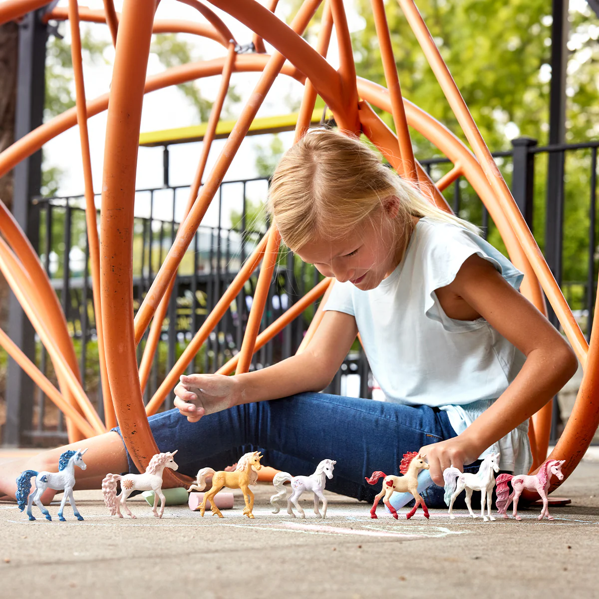 The collectible Tourmaline unicorn is a real eye-catcher in the pasture. With its beautiful pink coat and the chic crystal tattoo on it flank, it stands out anywhere. It certainly knows how pretty it is, because it has carefully braided its mane especially for its friends. But the elaborately glittered braids don't keep it from romping around the meadows of BAYALA®. Wait, where are the other crystal unicorns? Impatiently it paws with its dainty hooves. Maybe in the meantime you can join in? It will even give you a poster of the whole herd of friends as a souvenir of a great day together.
